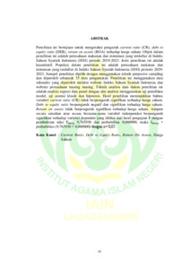 Amanda, Laiyina Miska --> (2024) PENGARUH CURRENT RATIO, DEBT TO EQUITY RATIO DAN RETURN ON ASSETS TERHADAP HARGA SAHAM PERUSAHAAN FOOD AND BEVERAGE YANG TERDAFTAR DI ISSI PERIODE 2019-2023. Skripsi thesis, IAIN Lhokseumawe.
