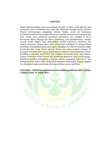 ADHAIRULSYAH, MUHAMMAD --> (2025) EFEKTIVITAS PENERAPAN PEMBATASAN USIA MENIKAH PASAL 7 UNDANG-UNDANG NOMOR 16 TAHUN 2019 DALAM MENGANTISIPASI PERNIKAHAN DINI (Studi Kasus di Kantor Urusan Agama Kecamatan Blang Mangat). Skripsi thesis, IAIN Lhokseumawe.