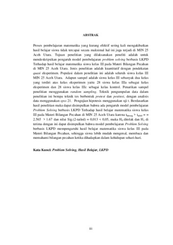 [error in script] (2023) PENGARUH MODEL PEMBELAJARAN PROBLEM SOLVING BERBASIS LKPD TERHADAP HASIL BELAJAR MATEMATIKA SISWA KELAS III PADA MATERI BILANGAN PECAHAN DI MIN 25 ACEH UTARA. Skripsi thesis, IAIN Lhokseumawe.